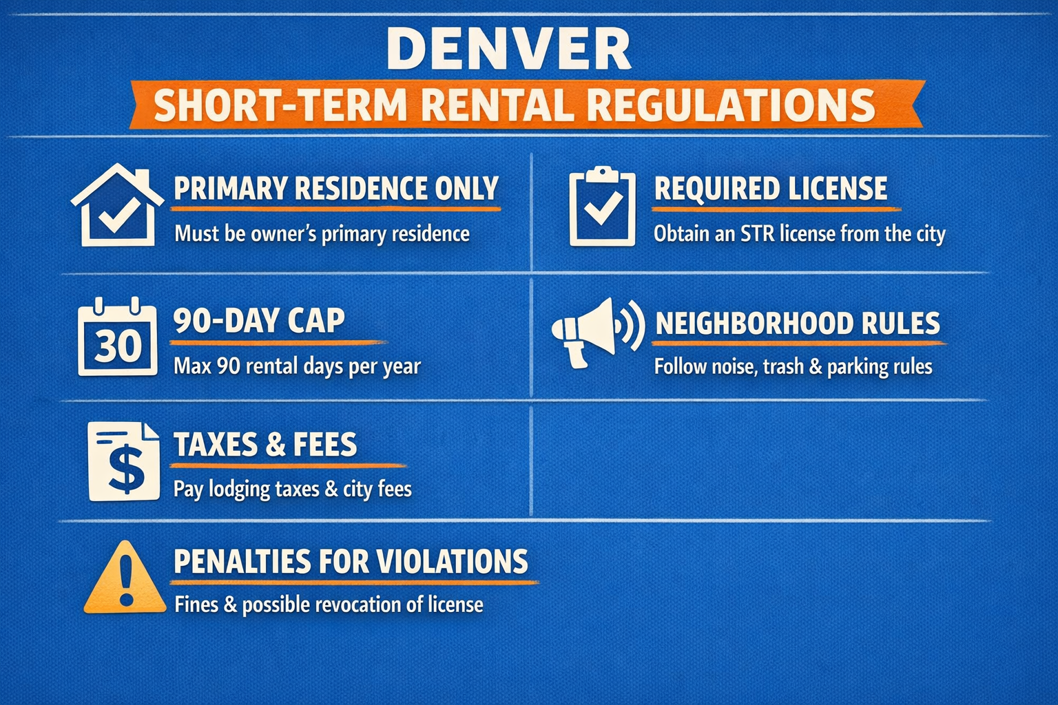 Denver itself has implemented strict short-term rental regulations. As of 2026, Denver requires short-term rental hosts to have a license, limits the number of STRs in residential neighborhoods, and prohibits them entirely in many areas. The regulations are complex and strictly enforced.